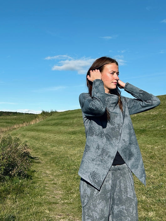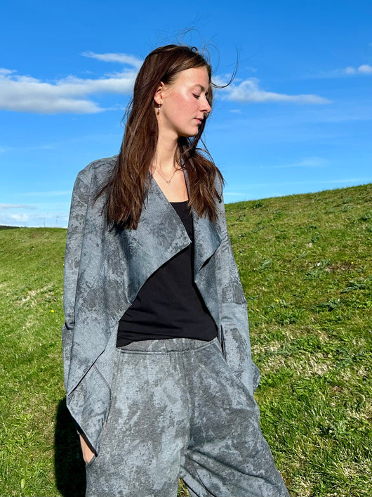 Stílhreinn og þægilegur peysu-jakki hnepptur uppá öxl.