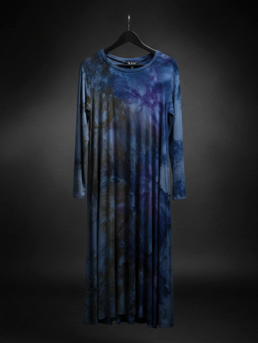 Relaxed fitted dress with full length raglan sleeves and 2 side pockets.