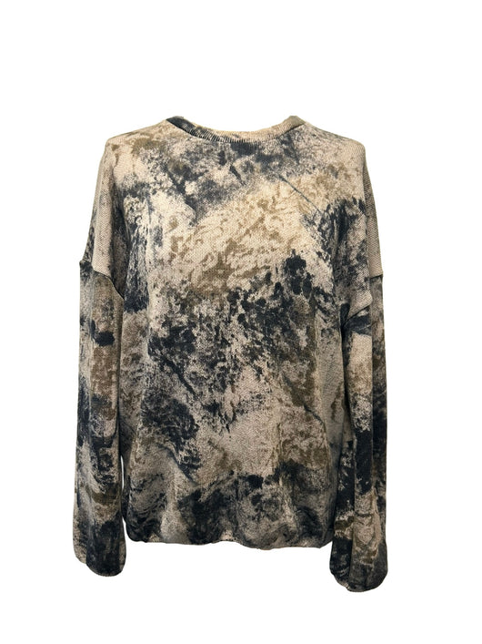 Handlituð laus sniðin unisex peysa úr fínni merino ull. Engar tvær peysur eru eins þannig peysan er einstök. Aðeins ein til!!!