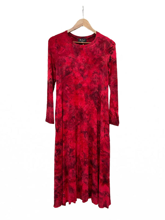 Relaxed fitted dress with full length raglan sleeves and 2 side pockets.