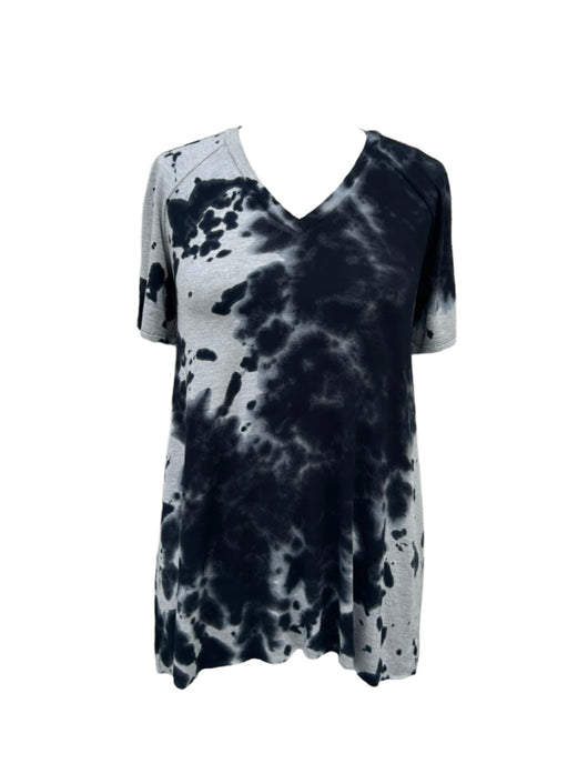 Laus sniðinn stutterma bolur með v-hálsmáli og raglan ermum.